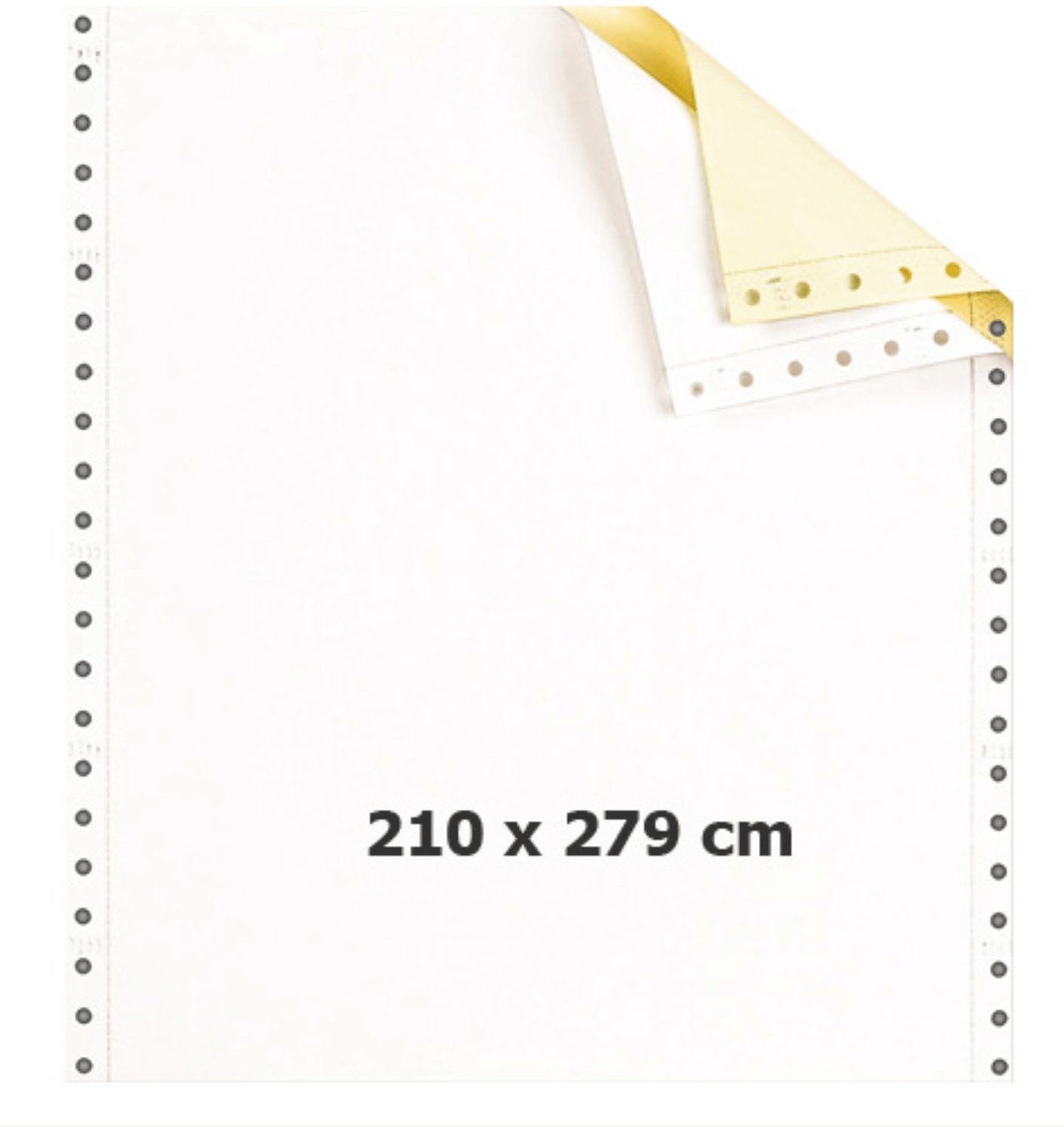 Giấy liên tục 210x279mm 2 liên với kích thước A4 (210 x 297mm), 2 liên in, nền giấy trắng, hồng hiển thị thông tin cá nhân, danh thiếp, thẻ nhân viên sử dụng cùng với dây đeo bảng tên sử dụng cùng với các dòng máy in kim chuyên dụng cho các hoạt động in ấn hóa đơn chứng từ hàng loạt