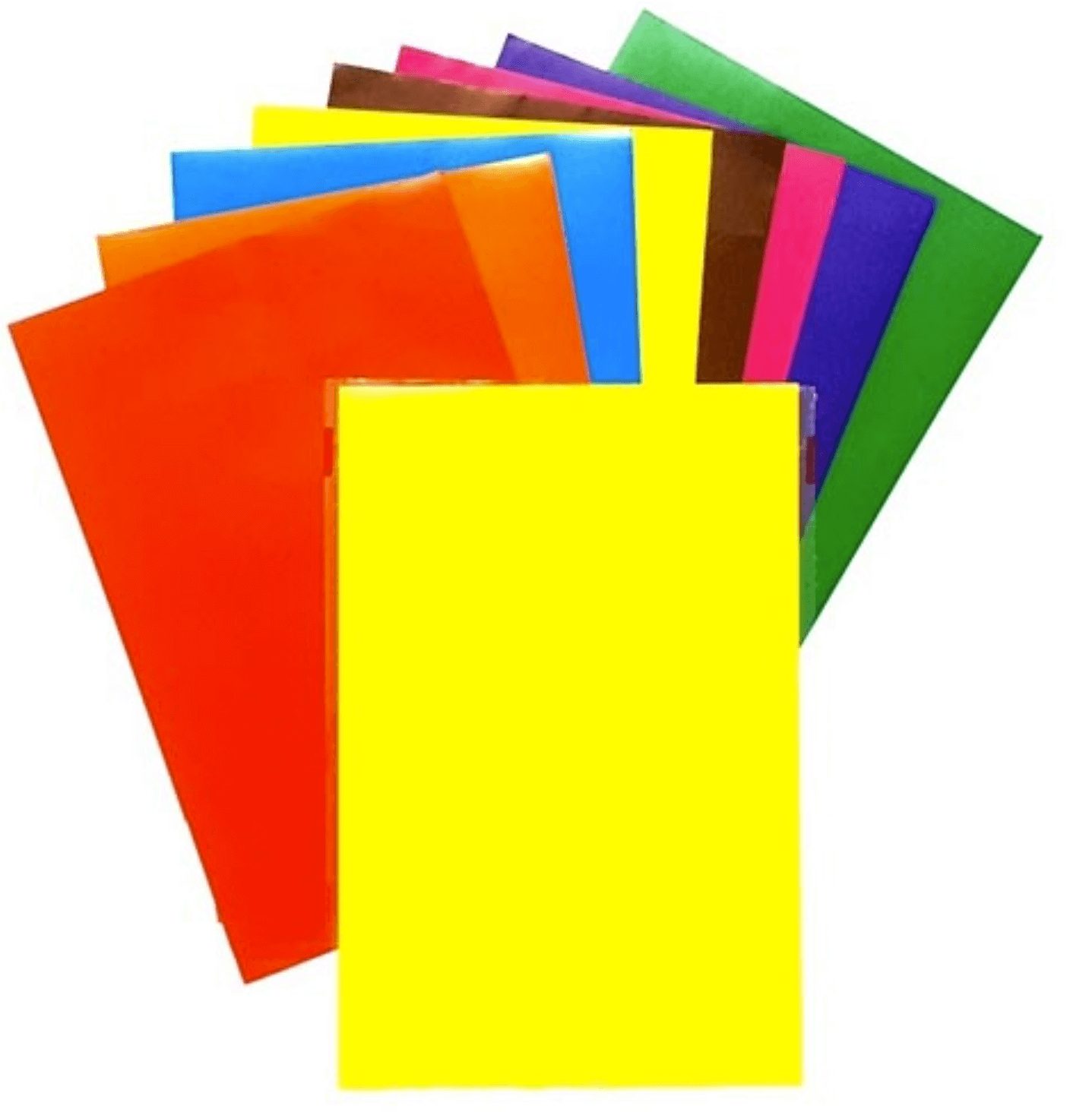 Giấy thủ công với màu nền xanh lá, xanh dương, đỏ, vàng, cam, nâu, hồng tạo tem in giá, làm dấu, bìa nhãn bưu phẩm, hàng hóa ứng dụng trong các hoạt động công nghiệp sản xuất gói quà, thiết kế, bao tập vở, trang trí