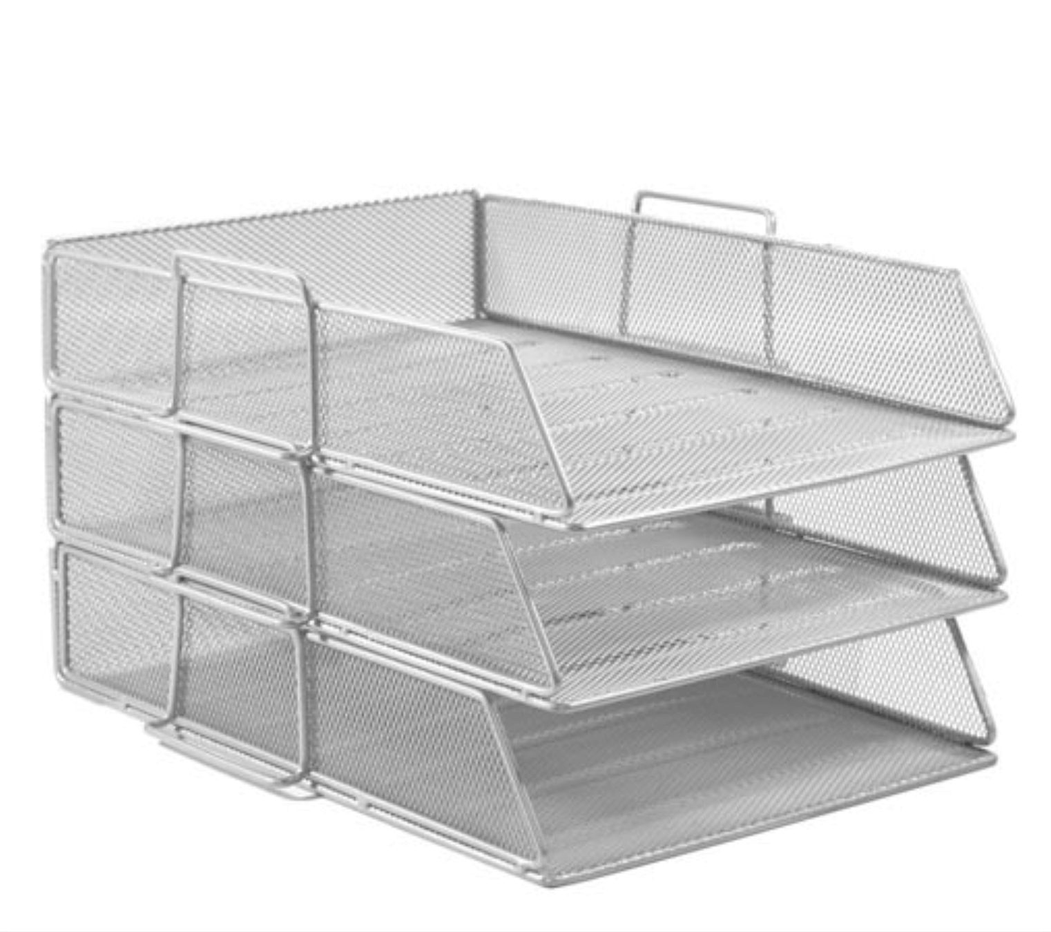 Khay lưới 3 tầng ráp (O-114) với kệ hồ sơ, 3 ngăn, dạng lắp ghép, thân lưới kim loại, khả năng lưu trữ 1,200 tờ lưu trữ và phân loại tài liệu F4, A4